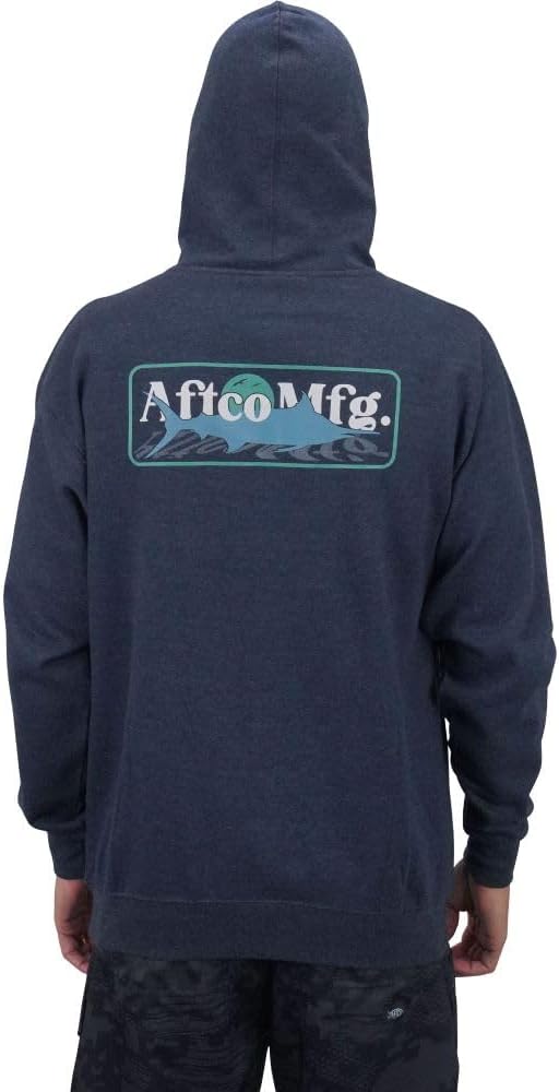 На спине этой толстовки изображен логотип AFTCO MFG и принт Marlin.