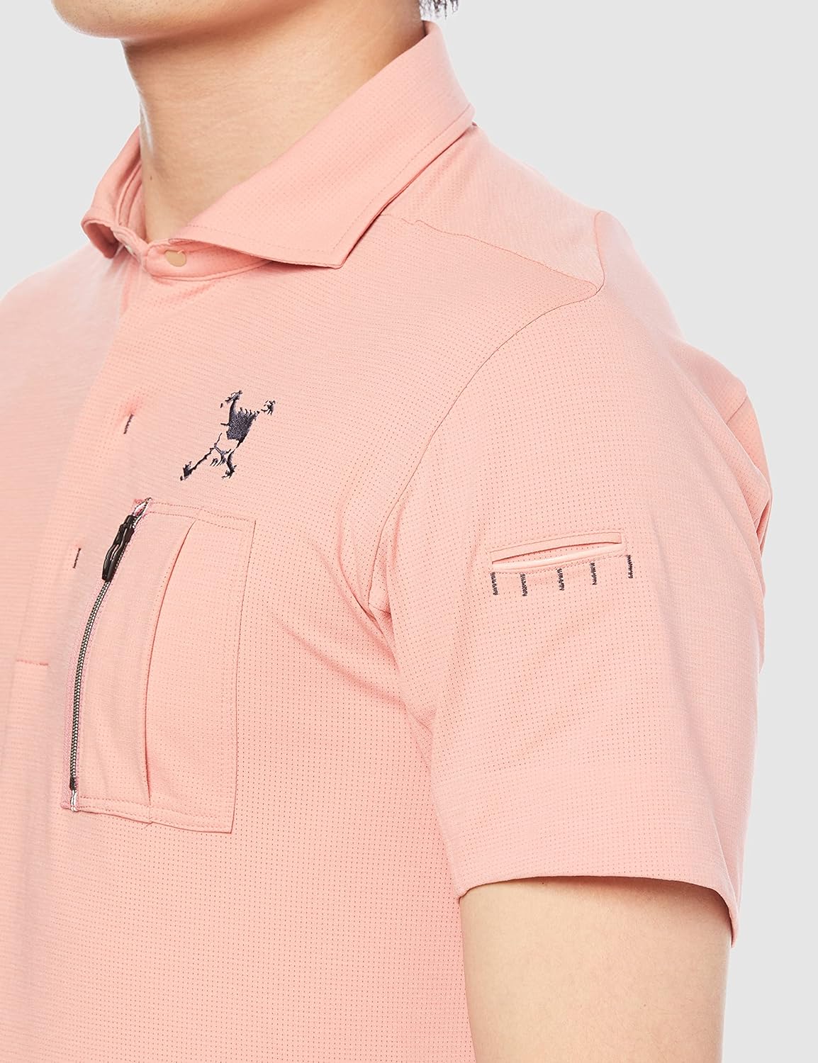 Эта трикотажная рубашка изготовлена из PRIMEFLEX, высокодышащего трикотажного материала высокой плотности. Клетчатая сетка обеспечивает воздухопроницаемость, не создавая при этом излишней спортивности, а умеренная плотность ткани добавляет стильный штрих. Рукава сконструированы таким образом, чтобы обхватывать лопатки сзади, создавая трехмерный узор, специально разработанный для игры в гольф. Рукава изгибаются от лопаток, поддерживая движение плеч во время удара. Швы, низ и манжеты рукавов сзади обработаны методом прижимной сварки, чтобы уменьшить натирание швов и ткани. Эта простая рубашка с карманом на молнии имеет небольшой дополнительный карман с правой стороны. Значок O на плечевом шве добавляет изысканности, а сочетание цветов создает свежий образ.