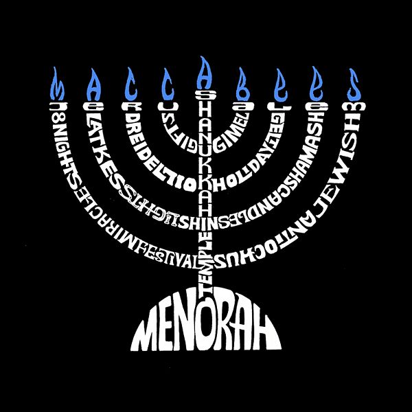 На протяжении веков менора стала одним из самых узнаваемых символов не только Хануки, но и иудаизма и еврейской силы. Отпразднуйте Хануку (также произносится как Ханука) с этим удивительным дизайном в виде слов, созданным из списка слов, связанных с Ханукой.