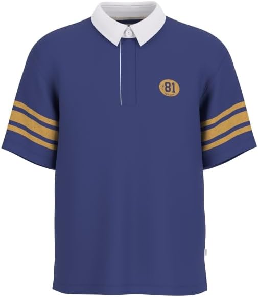 Рубашка-поло в стиле поп с манжетами, отделанными несколькими краями.