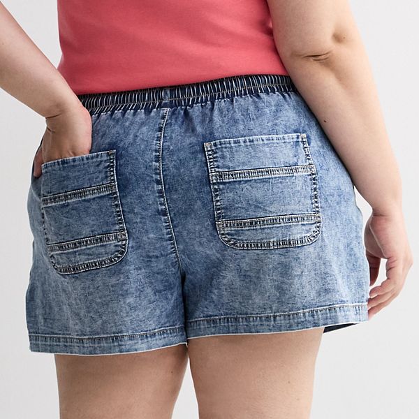 Джинсовые шорты Juniors plus size mid rise tencel pull-on So, Light Acid