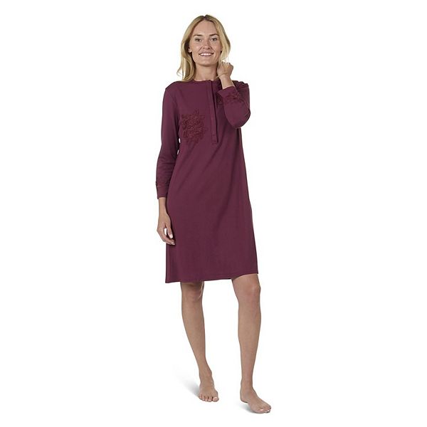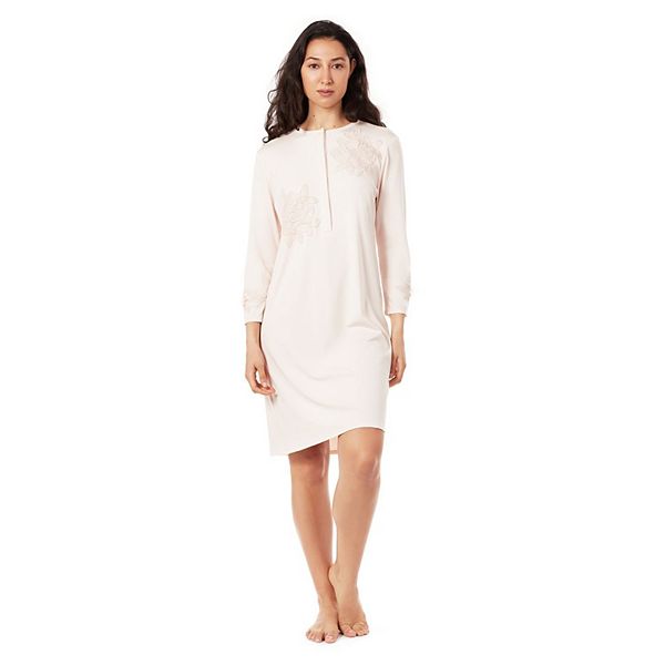 Дышащее модальное платье-комбинация длиной до колена с длинными рукавами, изящной драпировкой и вышитыми цветочными деталями.