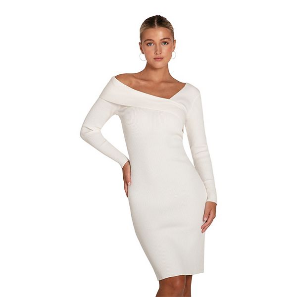 Теплое и мягкое на ощупь, облегающее фигуру трикотажное платье Way You Move станет незаменимым элементом зимнего гардероба благодаря асимметричному вырезу горловины с открытыми плечами и классической длине до колена.