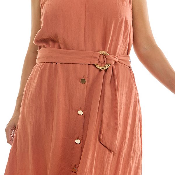 Приготовьтесь привлекать всеобщее внимание этим стильным платьем миди, идеально сочетающим элегантность и очарование. Платье Luxology с нефункциональным поясом спереди и декоративными пуговицами станет очаровательным дополнением, идеальным для любого случая, будь то бранч с друзьями или романтический ужин.