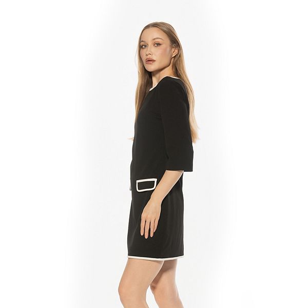 Окунитесь в мир непринужденной элегантности с этим стильным платьем-футляром с вырезом-лодочкой, украшенным шикарной контрастной окантовкой и облегающими рукавами 3/4. Идеально подходит для всего, от бранча до деловых встреч, эта незаменимая вещь от ALEXIA ADMOR сидит идеально и позволяет вам выглядеть великолепно весь день.