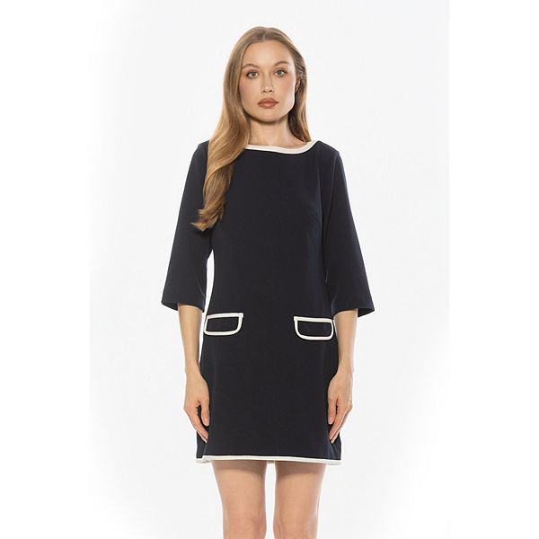 Окунитесь в мир непринужденной элегантности с этим стильным платьем-футляром с вырезом-лодочкой, украшенным шикарной контрастной окантовкой и облегающими рукавами 3/4. Идеально подходит для всего, от бранча до деловых встреч, эта незаменимая вещь от ALEXIA ADMOR сидит идеально и позволяет вам выглядеть великолепно весь день.