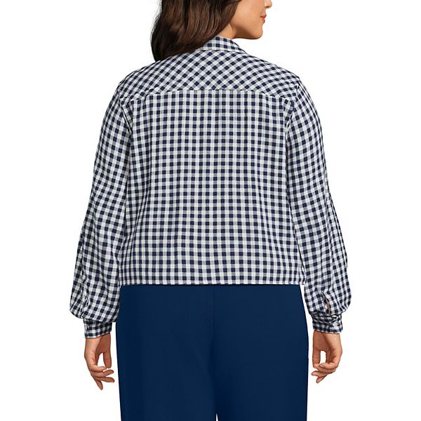 Фланелевая рубашка кроп плюс сайз Lands' End, Sea Ivory Mini Check