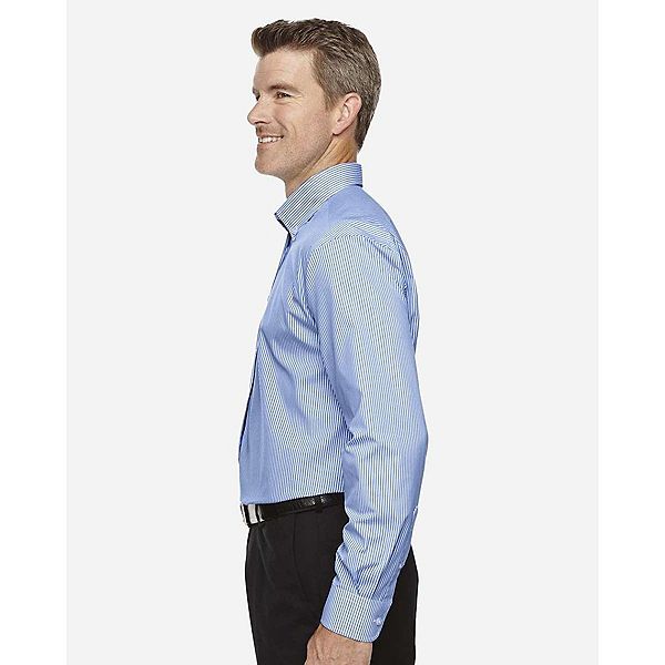 3,4 унции (США), 5,7 унции/лайд (Канада), 55/45 хлопок/полиэстер. Рубашка из тонкой пряжи. Не мнется и не образует пятен. Классический крой. Воротник с отворотом и перламутровыми пуговицами. Регулируемый комфортный воротник обеспечивает растяжение до 2,5 см в области шеи. Запатентованные швы, обработанные лентой, предотвращающие образование складок. Специально проклеенные воротник, манжеты и планка. Разрезной шов на спине с кокеткой, выкроенной по косой. Левый нагрудный карман.