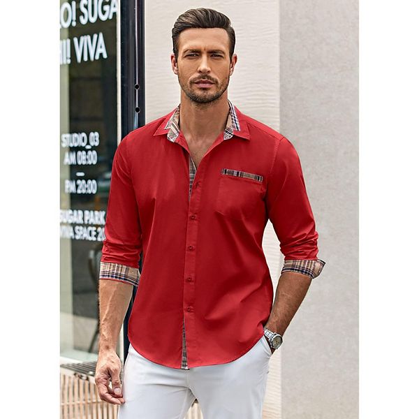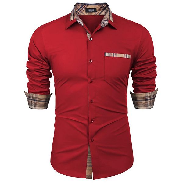 Мужская рубашка с клетчатым воротником slim fit button down Coofandy, Red