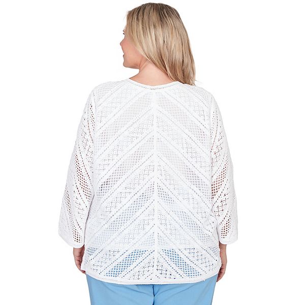 Обновите свой гардероб этим очаровательным свитером от Alfred Dunner, где восхитительный узор «шеврон» привнесет легкость в ваш повседневный стиль. Простой круглый вырез горловины, изящные рукава три четверти и вневременной силуэт делают эту вещь идеальным дополнением к любому случаю.