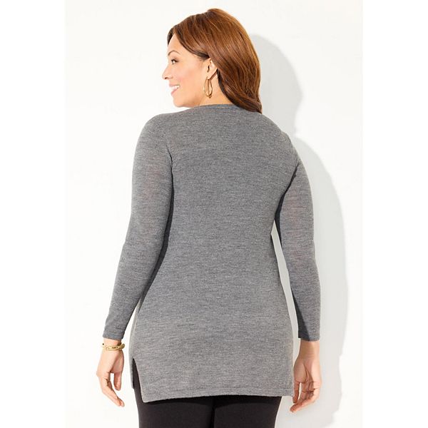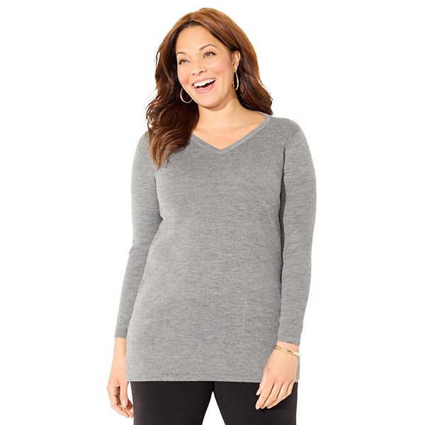 Женский свитер V-neck plus size cashmiracle Catherines, Medium Heather Grey