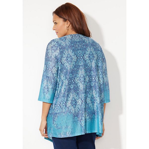 Легкий кардиган, который прекрасно дополнит ваш образ. Гладкий и струящийся, с идеальным количеством эластичности. Создан для комфорта и свободы движений в течение дня. Наденьте поверх классической майки и сочетайте с элегантными брюками или джинсами. ТКАНЬ: Мягкая, гладкая и приятная на ощупь. Красиво струящаяся и беззаботная. ПОСАДКА: Свободная и удобная, с открытым передом, вытачками на груди для придания формы и рукавами 3/4. 94% Нейлон, 6% Спандекс. Машинная стирка. Импортный товар. Куртка больших размеров. Длина спереди: стандартная 32, для невысоких 30. Большие размеры 0X-6X, для невысоких больших размеров 0XWP-3XWP. Catherines