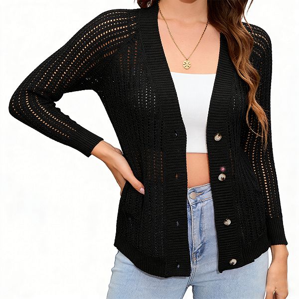 Легкий летний кардиган для женщин, весенний сетчатый вязаный кардиган-свитер