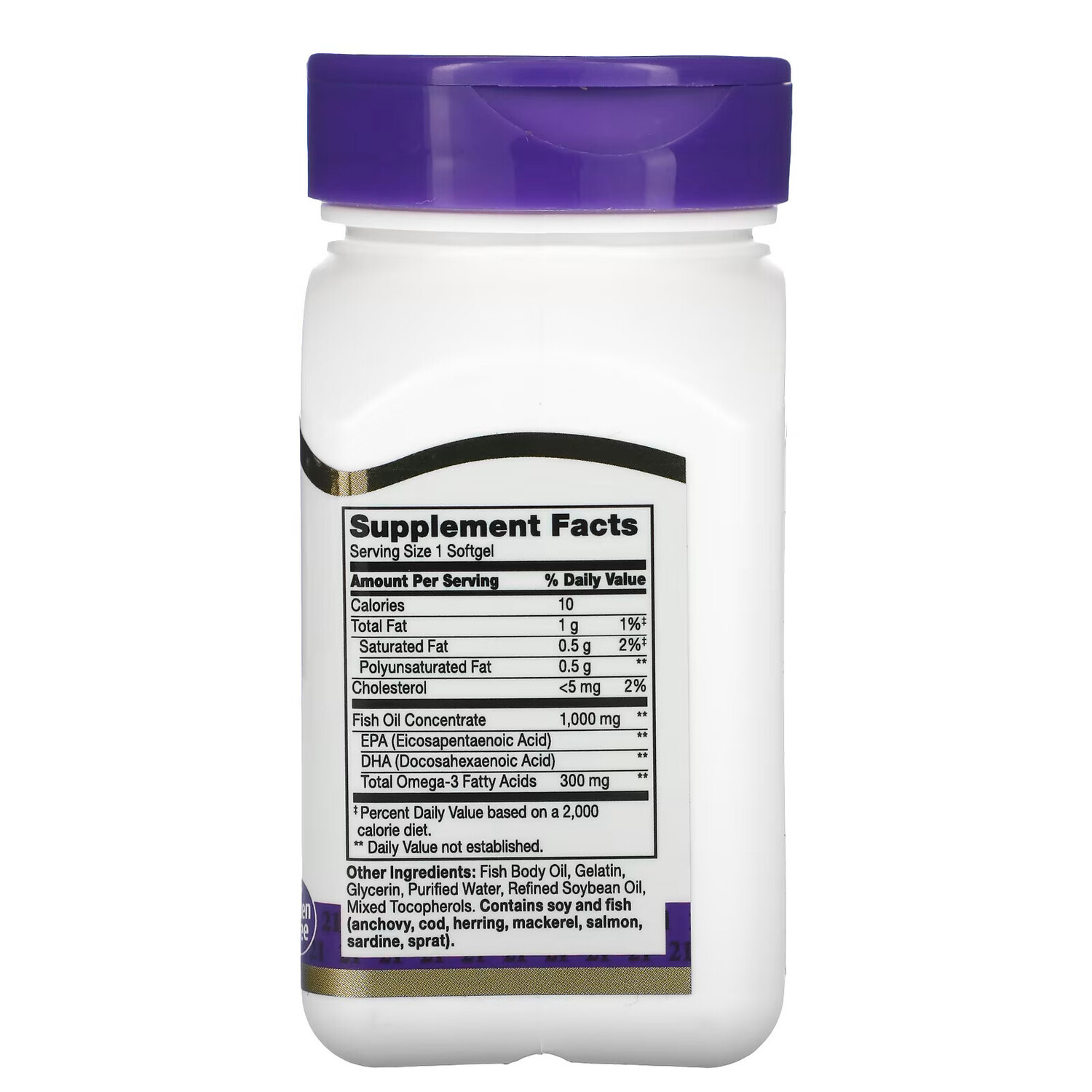 ЭПК и ДГК являются важными жирными кислотами омега-3, которые поддерживают здоровье сердечно-сосудистой системы, а также являются важными компонентами клеток организма. Рыбий жир от компании 21 Century содержит высококачественный молекулярно дистиллированный концентрат рыбьего жира.