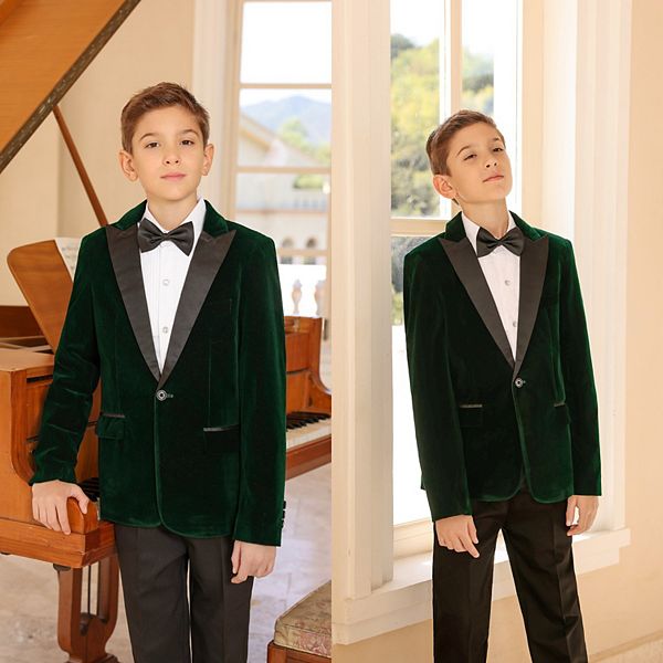 Особенности: Элегантный формальный стиль, сочетающий ретро-бархатные элементы с современным кроем, создающий образ «маленького джентльмена» с торжественностью для официальных мероприятий и яркостью бархатной текстуры.