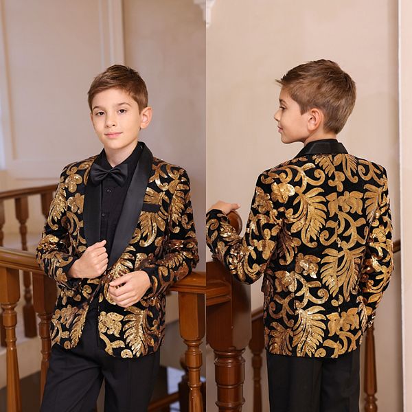 Подарите вашему малышу блистать в костюме Cloudstyle для мальчиков 5-14 лет, состоящем из двух частей, с пайетками, приталенного кроя и одной пуговицей - элегантный приталенный крой и блеск пайеток для торжественных свадебных торжеств.