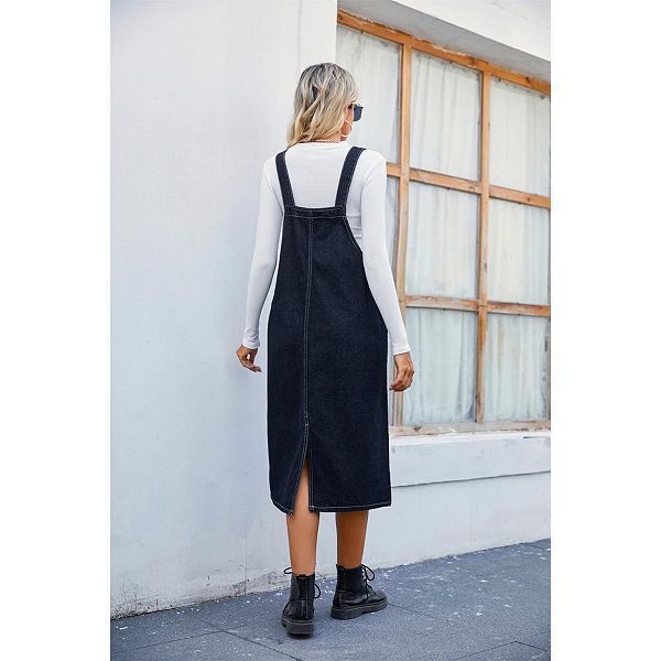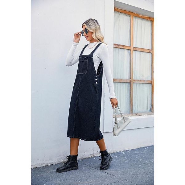 Удобная посадка: Изготовленный из прочного денима, этот комбинезон-платье обеспечивает комфорт и воздухопроницаемость, гарантируя, что вы будете чувствовать себя комфортно в течение всего дня.