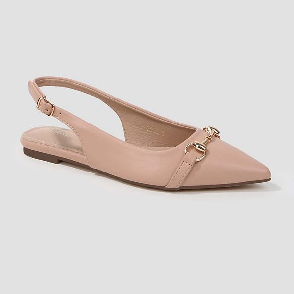 Балетки Rio с острым носком и ремешком на пятке выполнены из гладкой искусственной кожи с золотистой вставкой для создания шикарного образа.