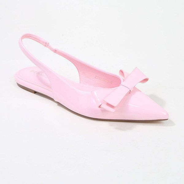 Эти элегантные и очаровательные балетки с острым носком выполнены из лакированной кожи и украшены асимметричным бантом, что придает им изысканный, но игривый вид.