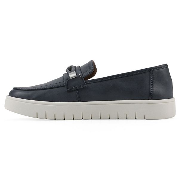 Ощутите комфорт с лоферами White Mountain, которые сочетают в себе стиль и удобство. Благодаря изящной металлической вставке, придающей им утонченность, ваши ноги будут чувствовать себя обновленными, пока вы с улыбкой справляетесь со всем - от повседневных дел до прогулок.