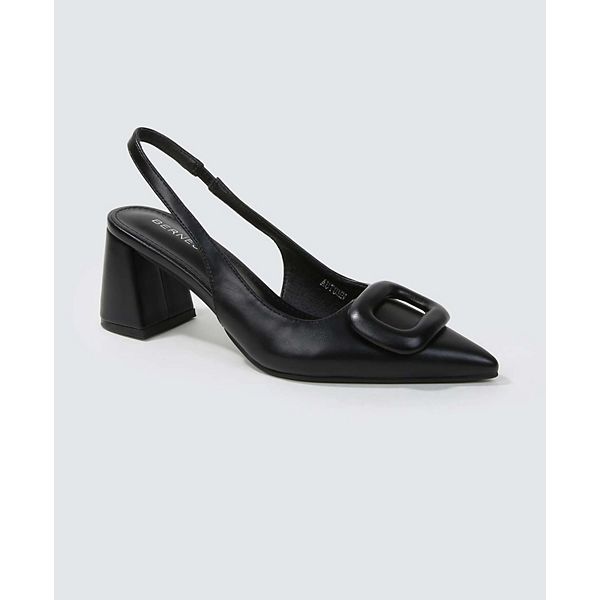Изящные и универсальные осенние туфли-лодочки с острым носком и ремешком на пятке дополнены скульптурным блочным каблуком и эффектной прямоугольной пряжкой.