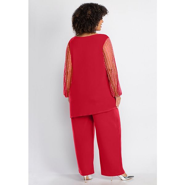 Женский костюм с бисером и сетчатыми рукавами, plus size Catherines, Red