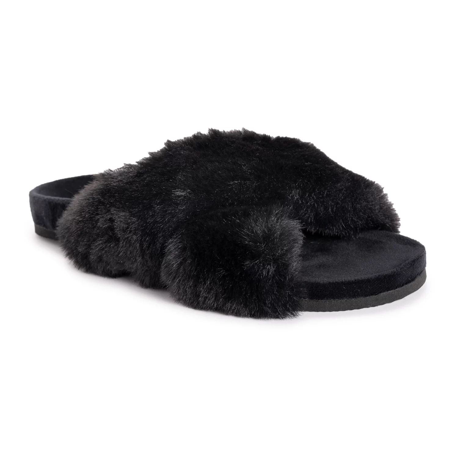 МУК ЛУКС Женские шлепанцы с гортензией крест-накрест MUK LUKS, черный