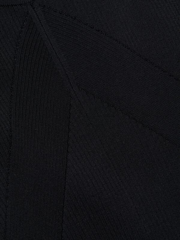 Это миди-платье без рукавов с облегающим силуэтом украшено рельефной резинкой с рисунком. V-образный вырез. Без рукавов. Спинка-борцовка. Пуловер.