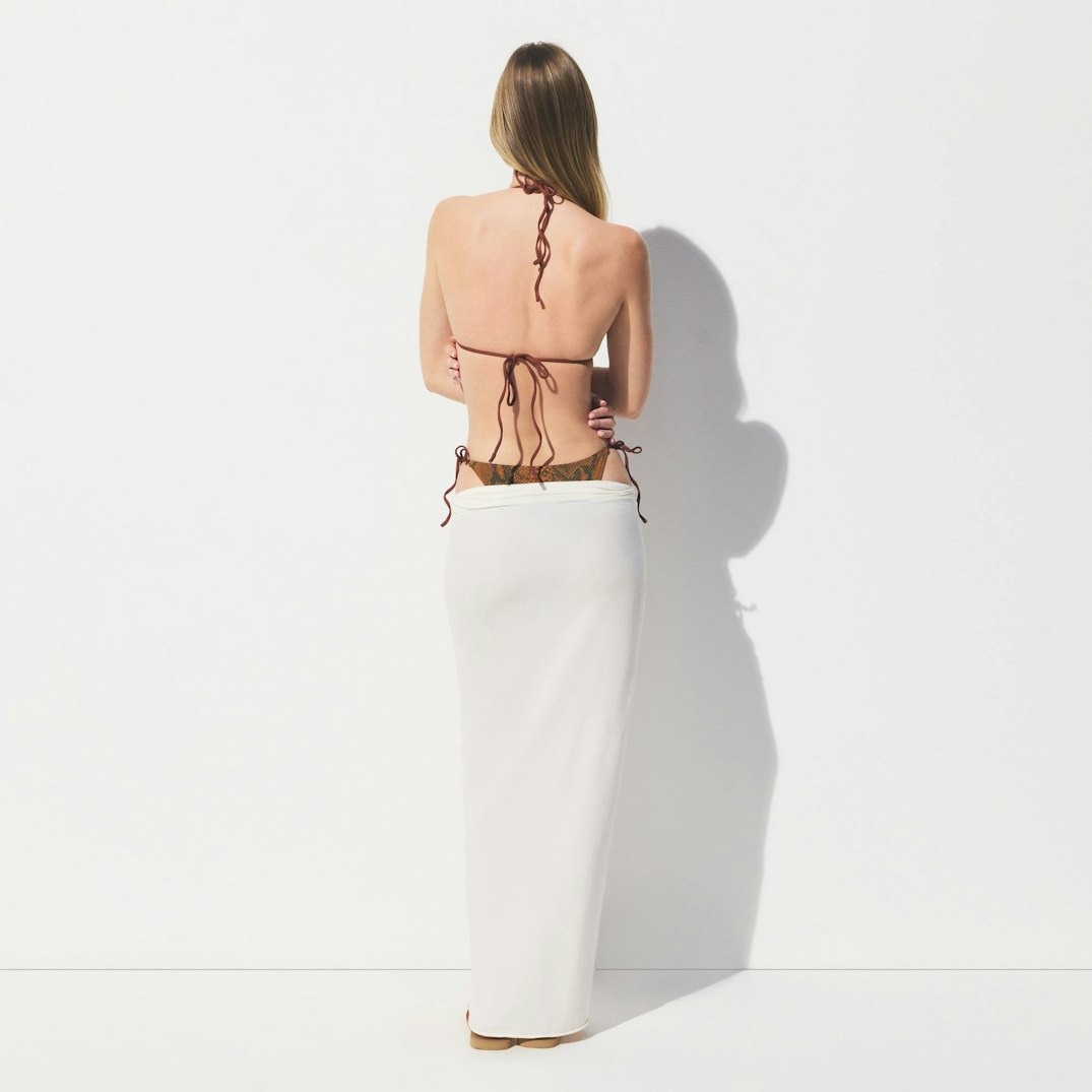Романтичный, воздушный, универсальный. Длинный струящийся крой и легкая полупрозрачная текстура создают неповторимый образ, который идеально дополняет любой купальник. Завязки позволяют экспериментировать с посадкой, создавая разнообразные силуэты. Минималистичный дизайн делает этот саронг идеальной основой для создания образов у бассейна и на пляже.