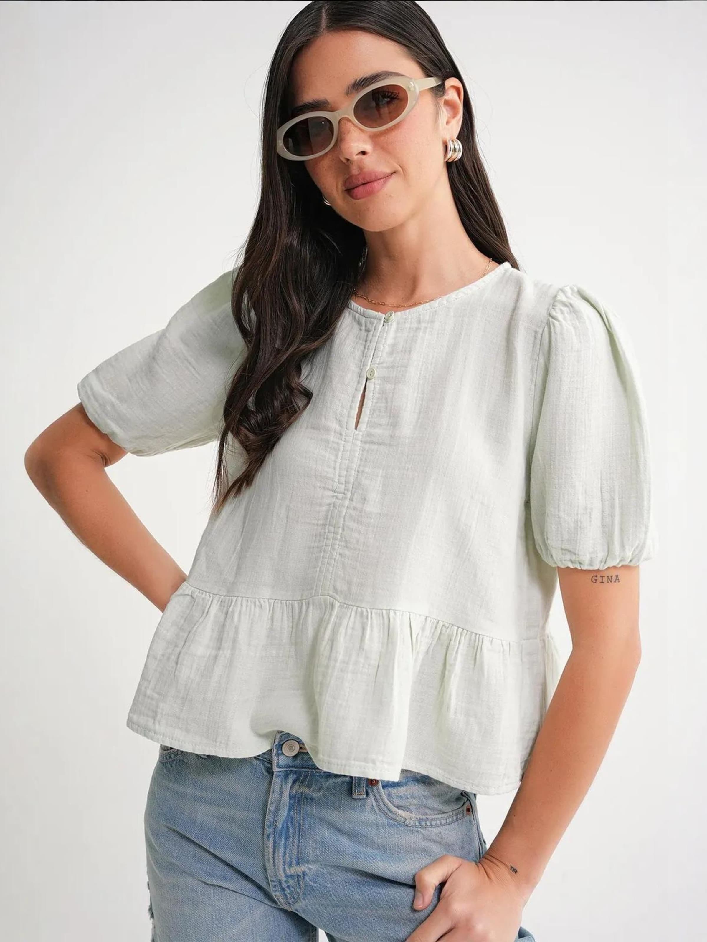 MixRay Блузка в пастельно-зеленом цвете
