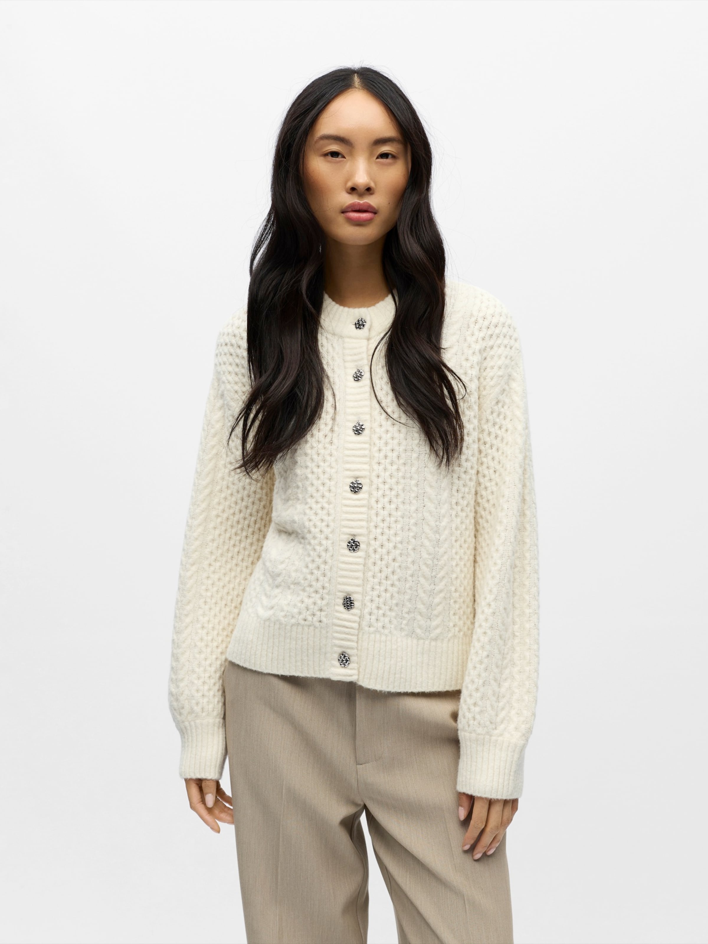 OBJECT Кардиган 'OBJDEBBIE' вязаный бежевый