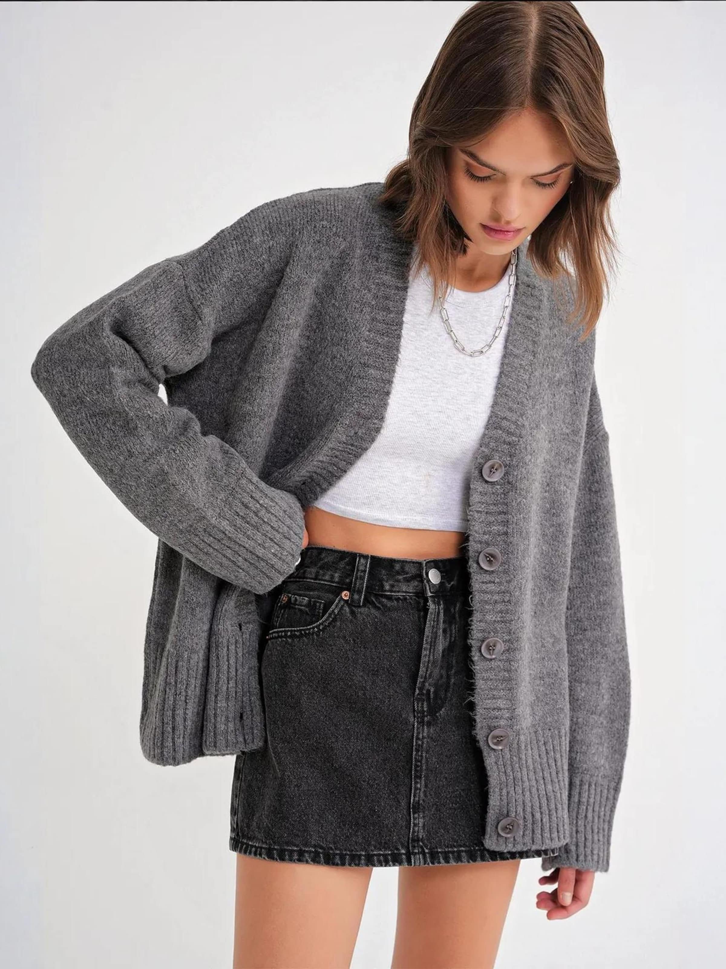 MixRay Кардиган оверсайз в темно-сером цвете