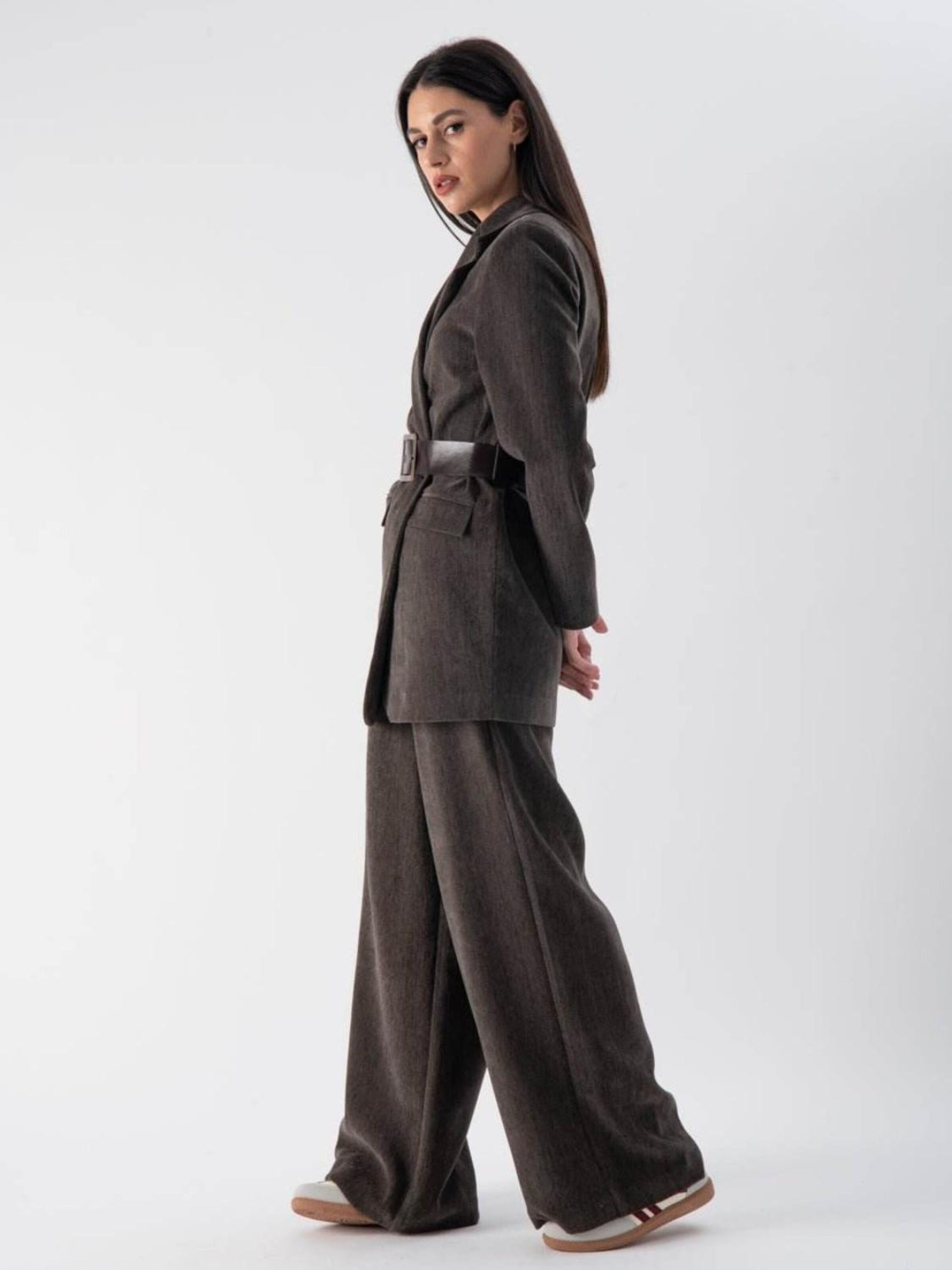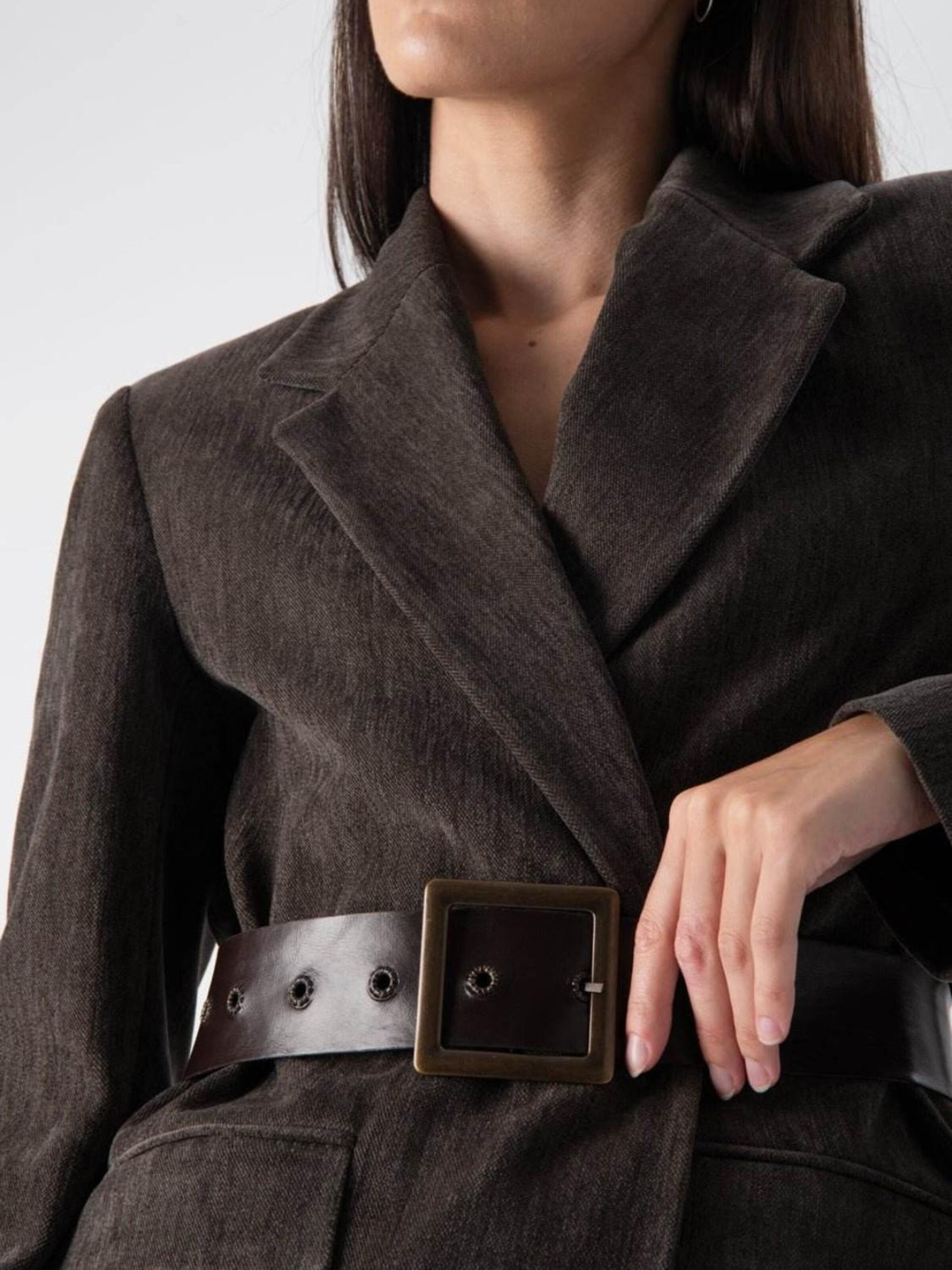 MND Пиджак 'Chenille blazer with belt' в сером цвете