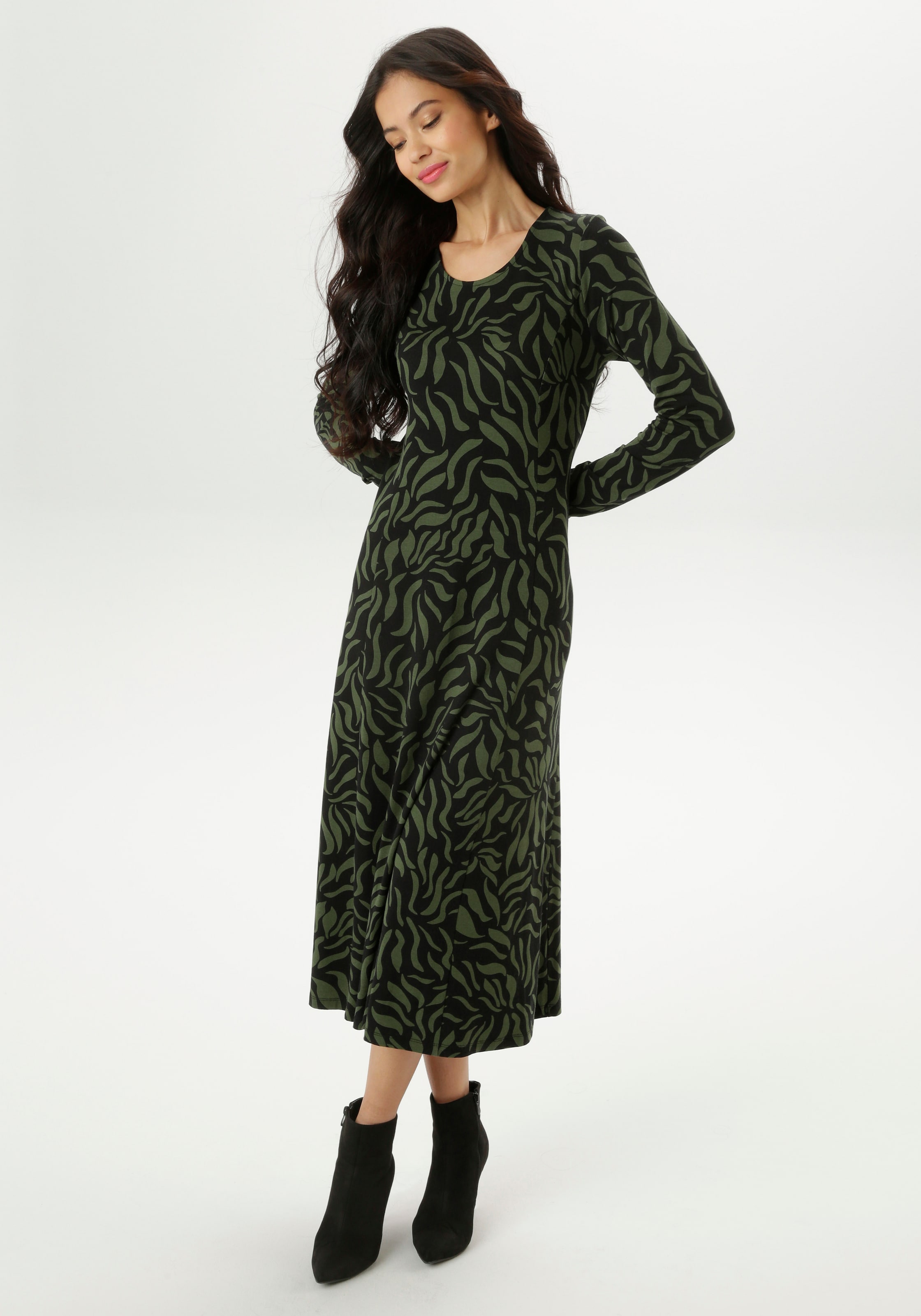 Aniston SELECTED Платье в темно-зеленом и черном цветах