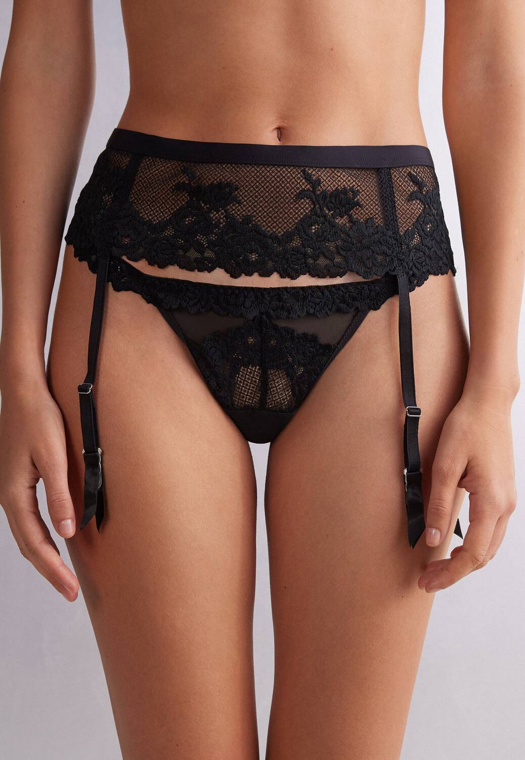 INTIMISSIMI Подвязка 'Pretty Flowers' в черном цвете