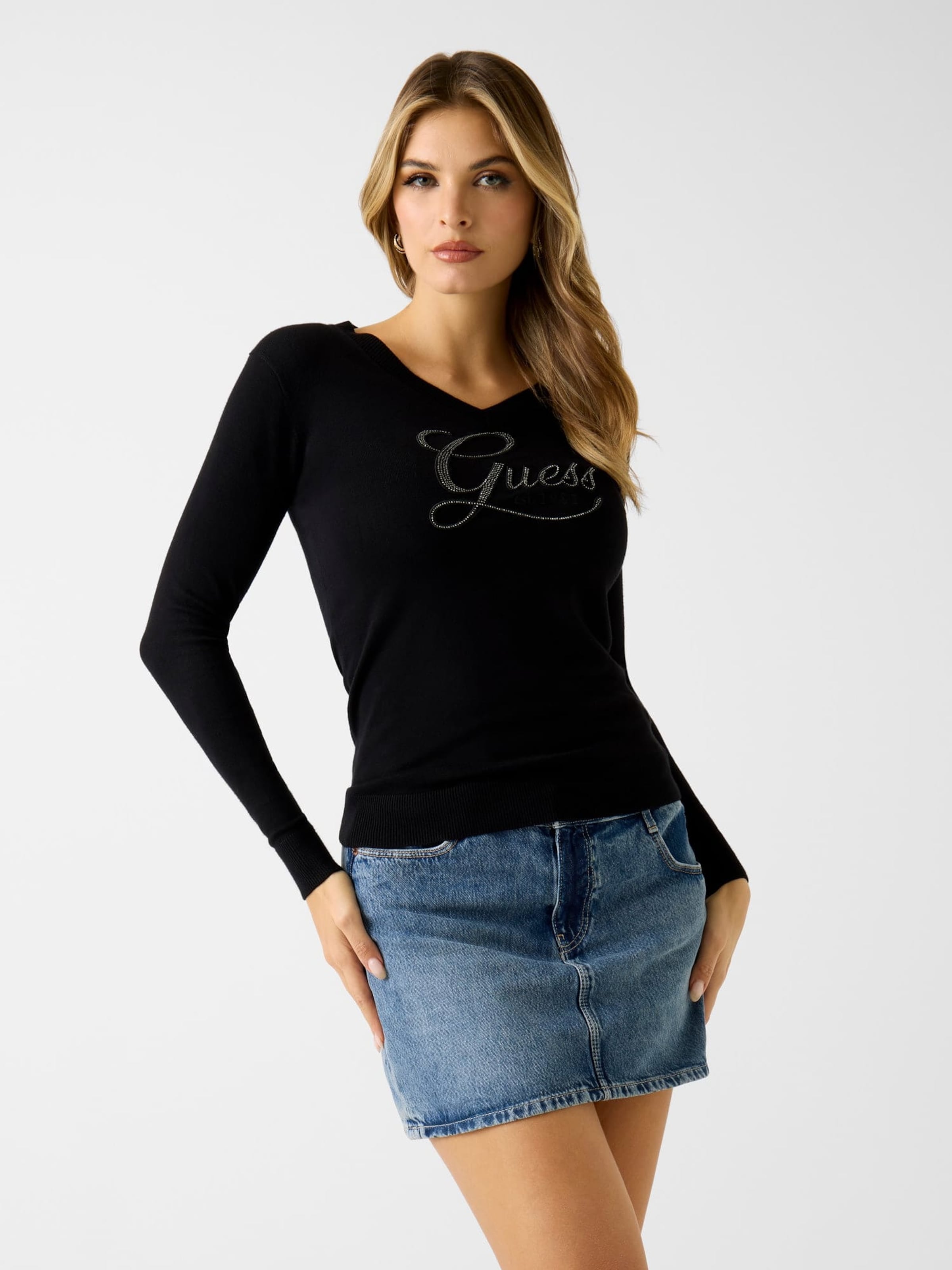 GUESS Свитер 'STEPHANIE' в черном цвете