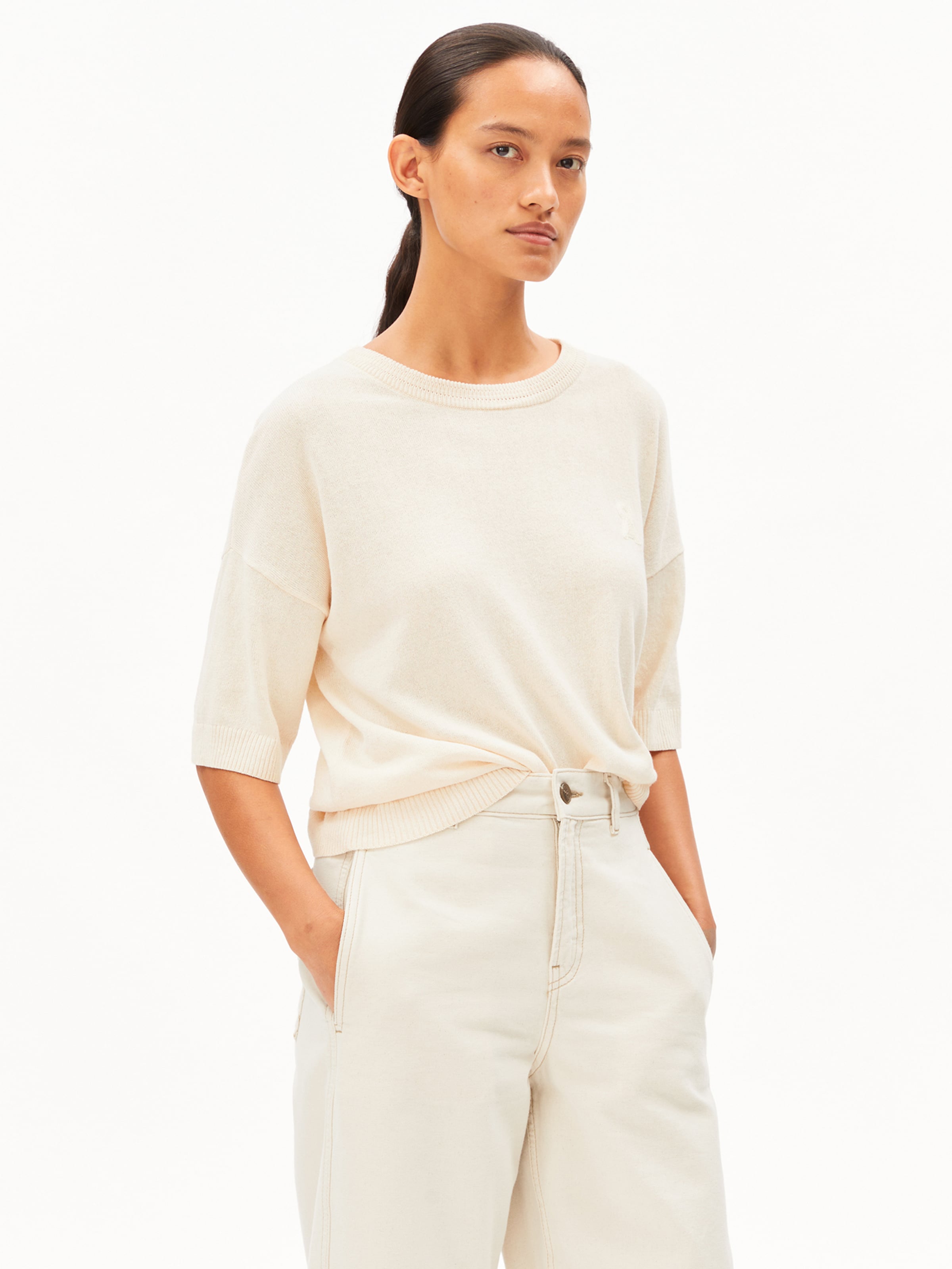 ARMEDANGELS Свитер 'Rabeaa Crochet Lino' в цвете Ecru
