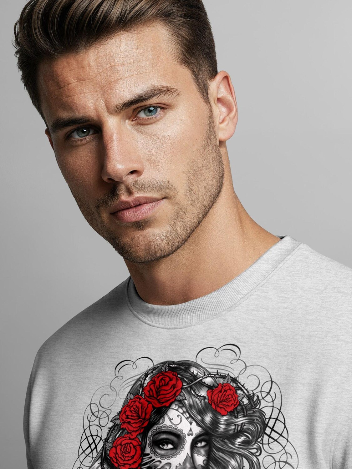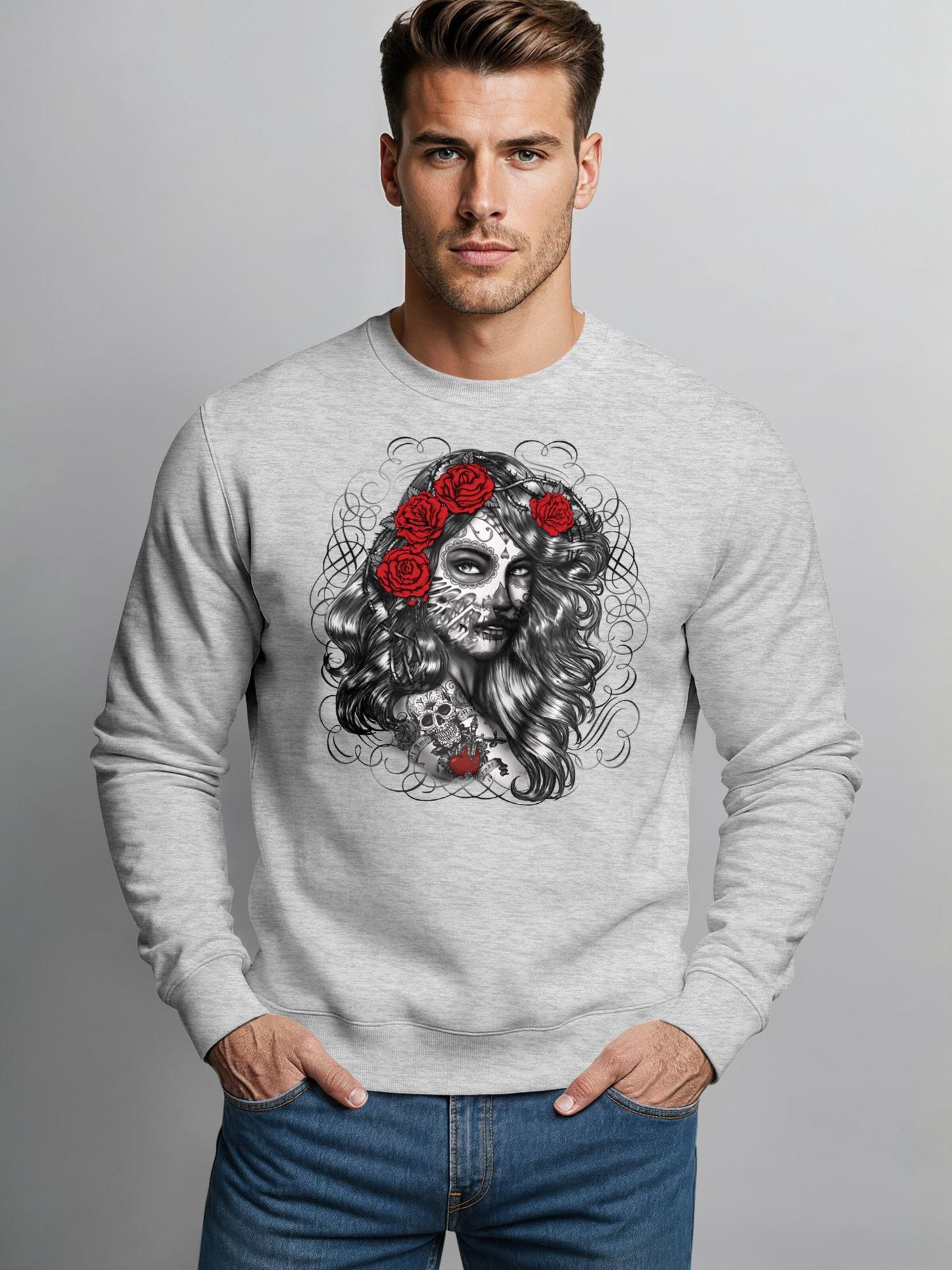 Neverless Свитшот 'Day of Dead' в сером цвете