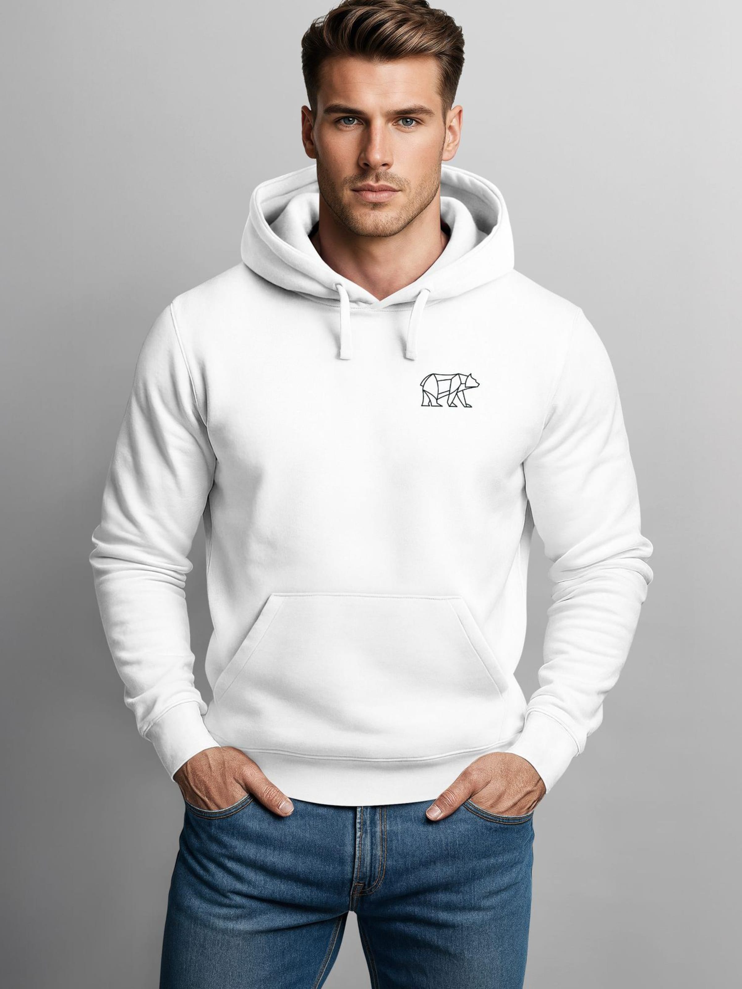 Neverless Толстовка 'Bär Lineart Polygon' из шерсти, белый
