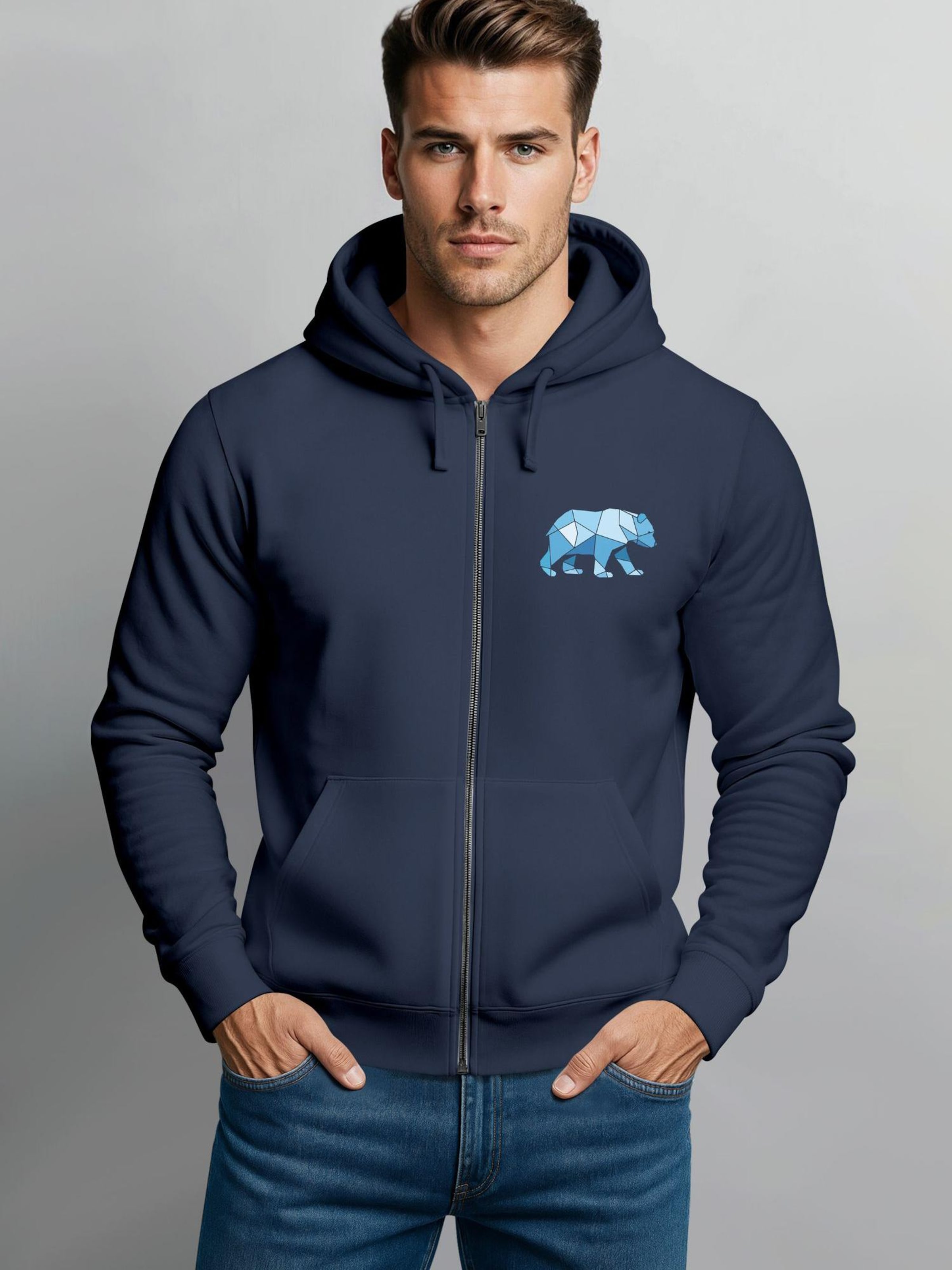 Neverless Толстовка с капюшоном на молнии 'Bär Polygon Blau' в цвете Navy 8 554₽
