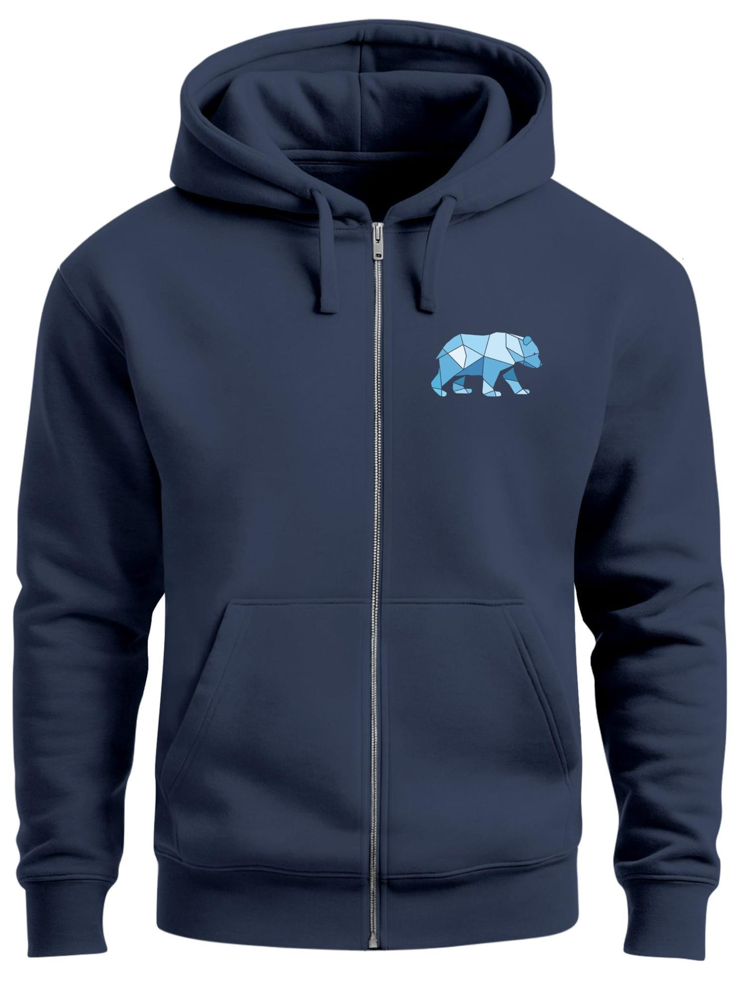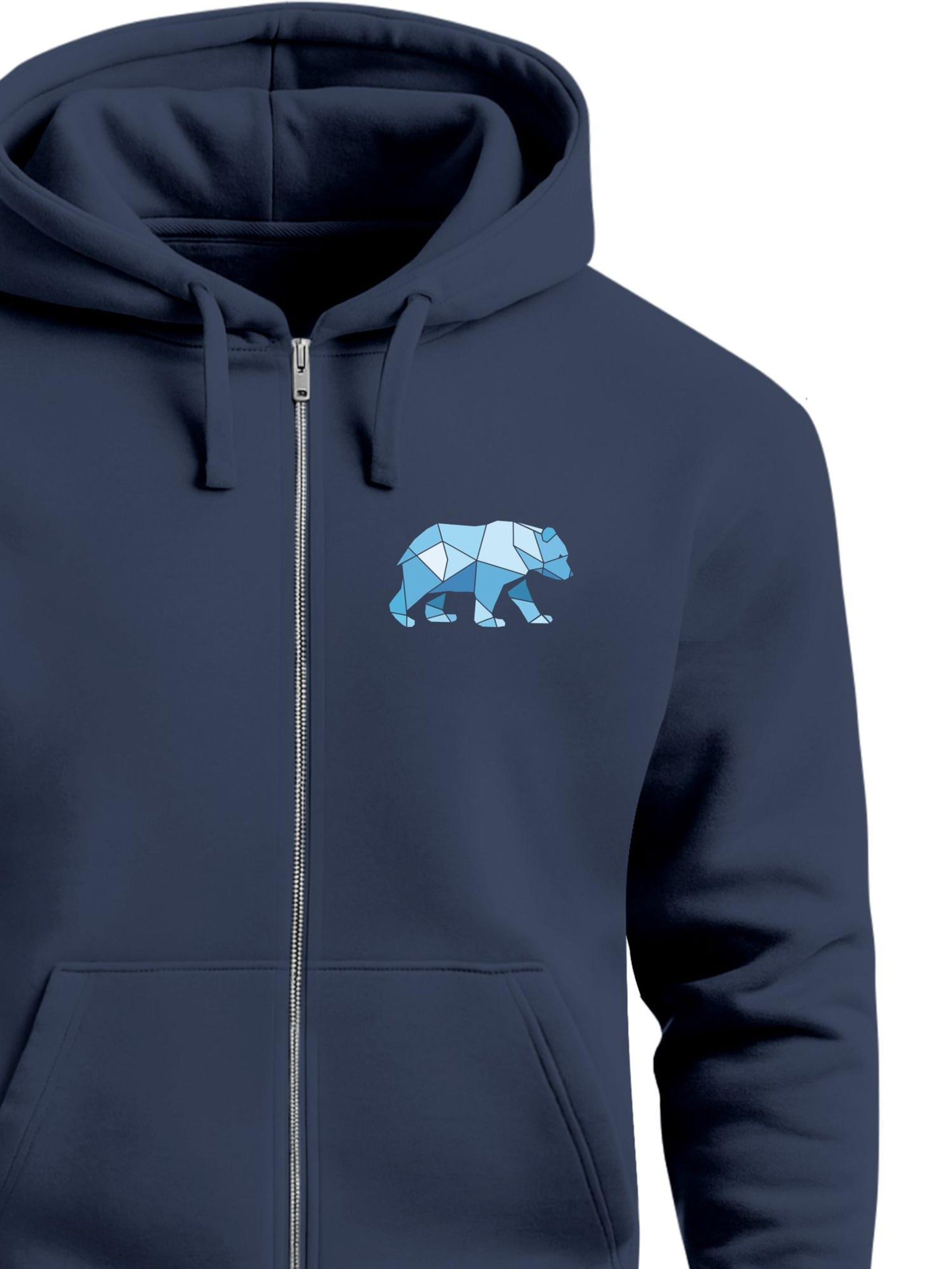 Neverless Толстовка с капюшоном на молнии 'Bär Polygon Blau' в цвете Navy