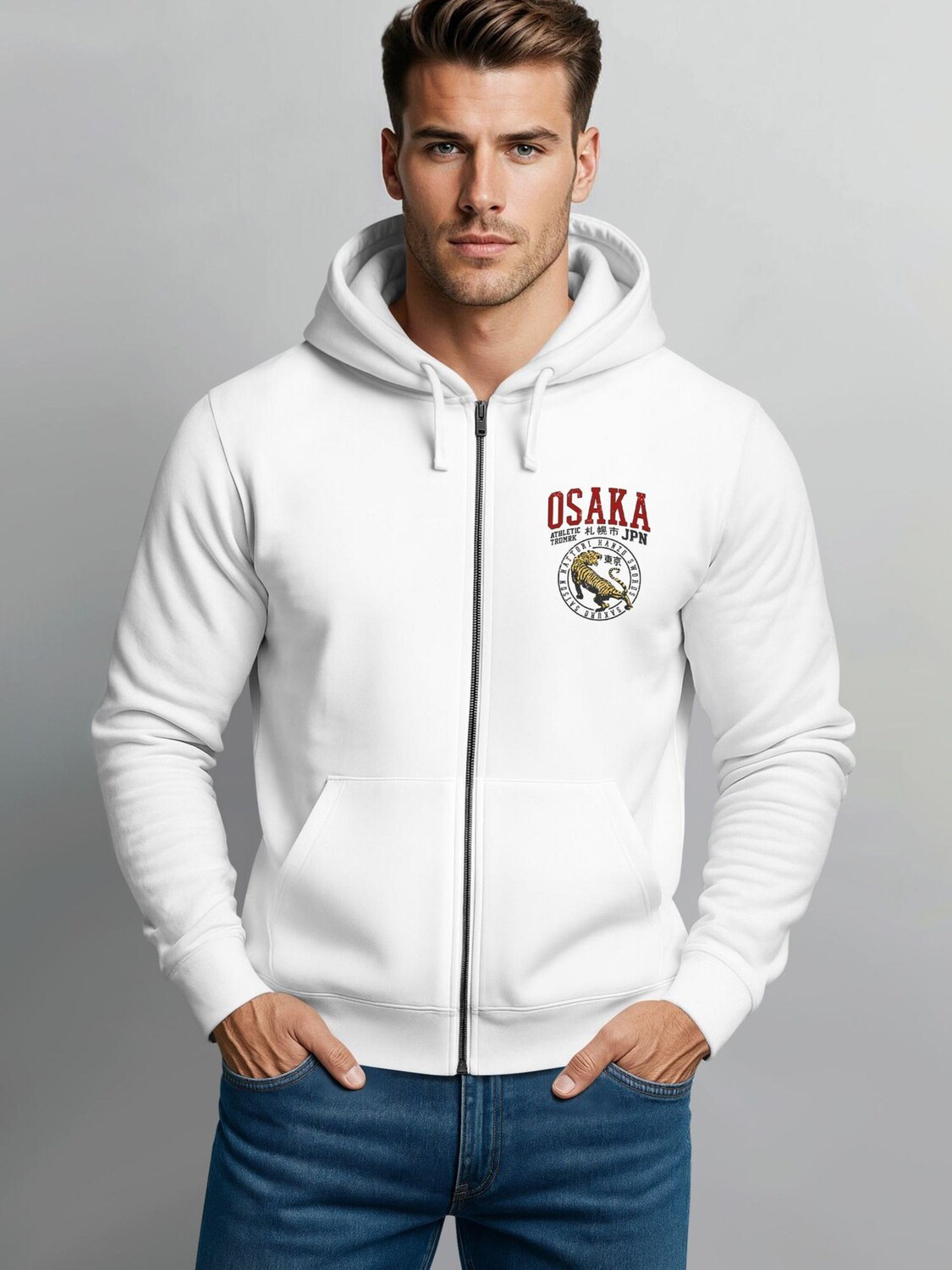 Neverless Толстовка с капюшоном на молнии 'Osaka' в белом цвете