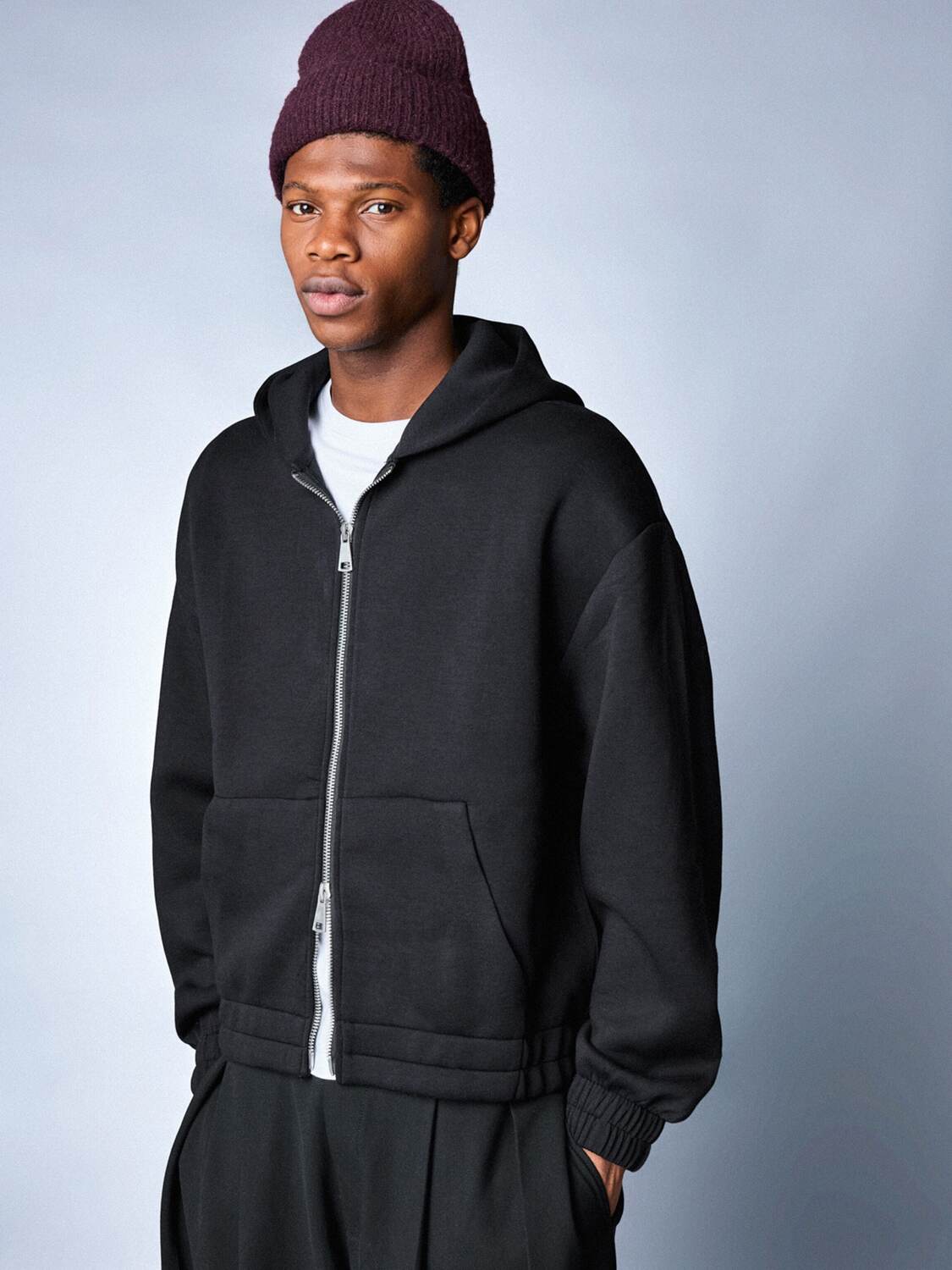 Bershka Худи на молнии в черном цвете