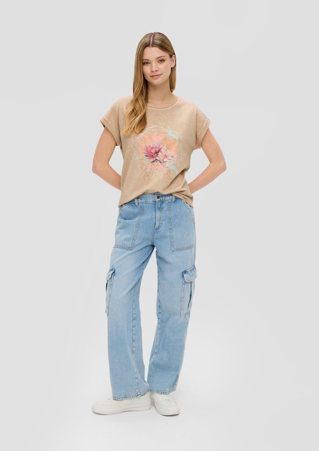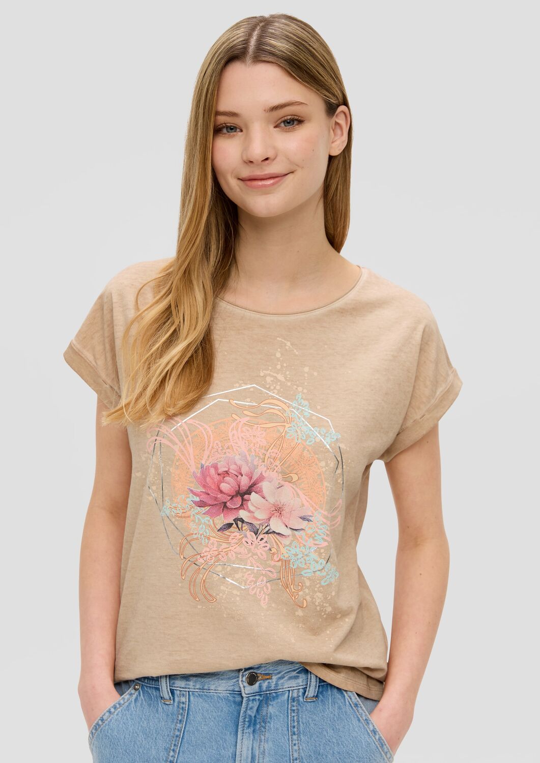 QS Футболка в крапчатом бежевом цвете
