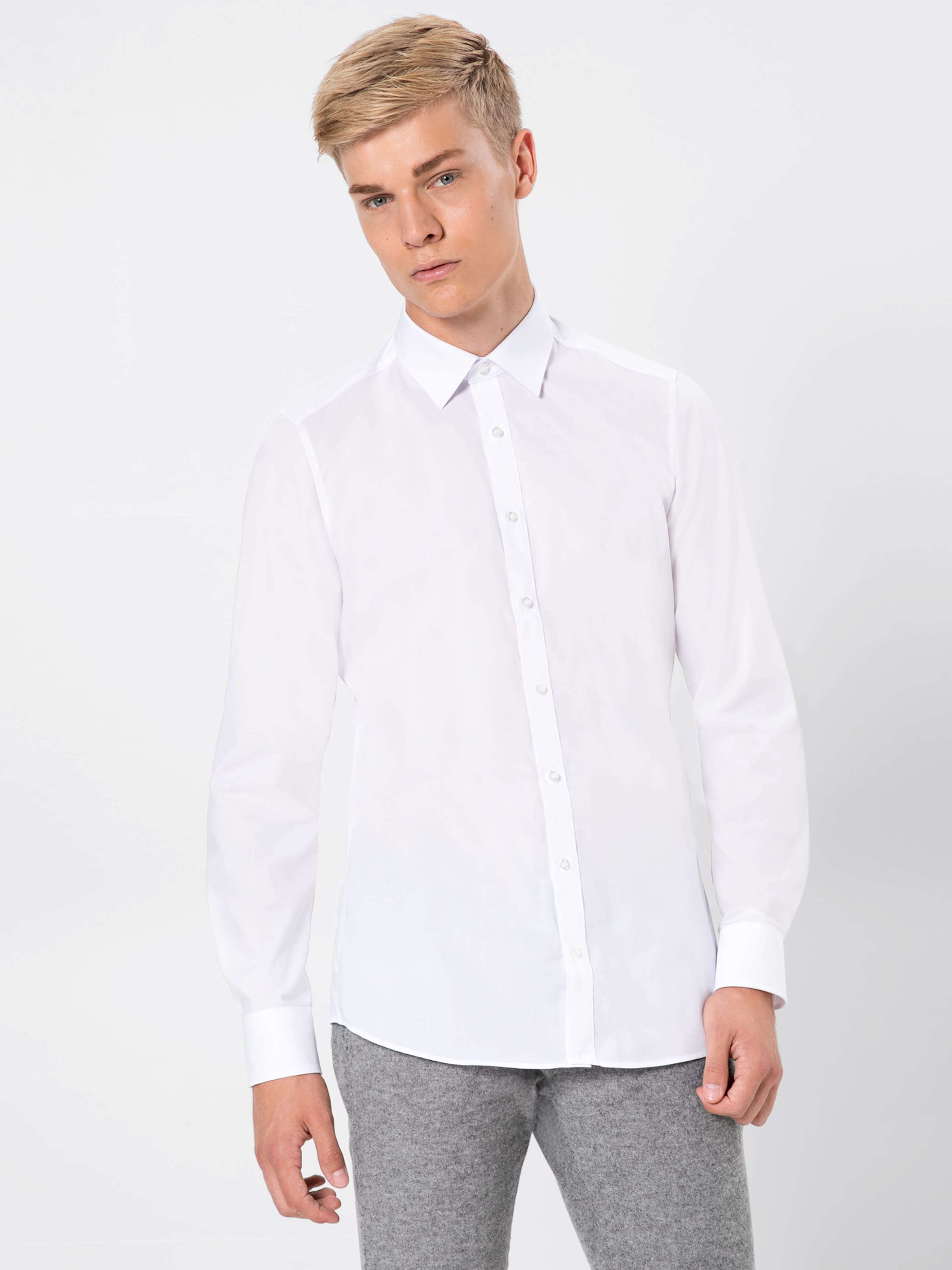 OLYMP Строгая рубашка 'Level 5' Slim fit в белом цвете