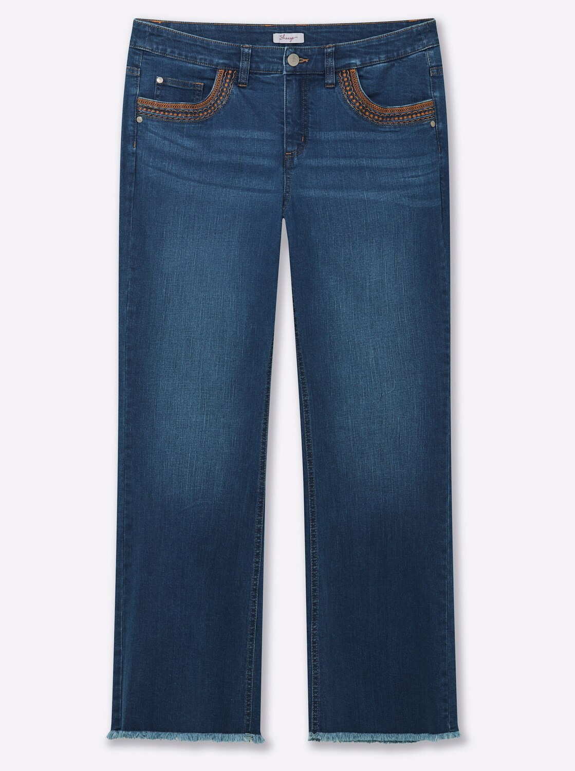SHEEGO Джинсы-клеш в синем цвете