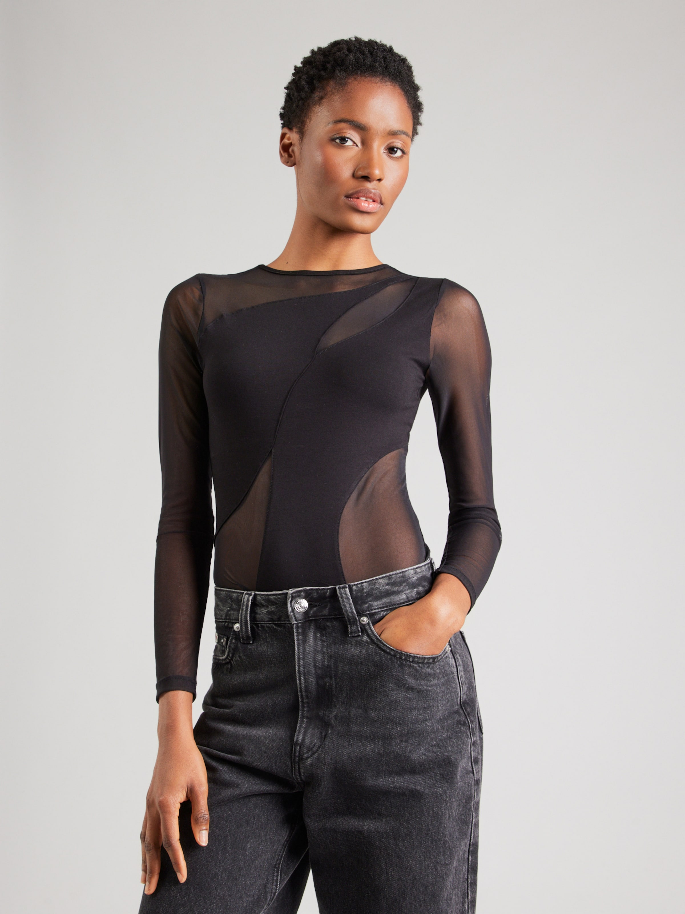 ABOUT YOU Боди-рубашка 'Gemma' в черном цвете