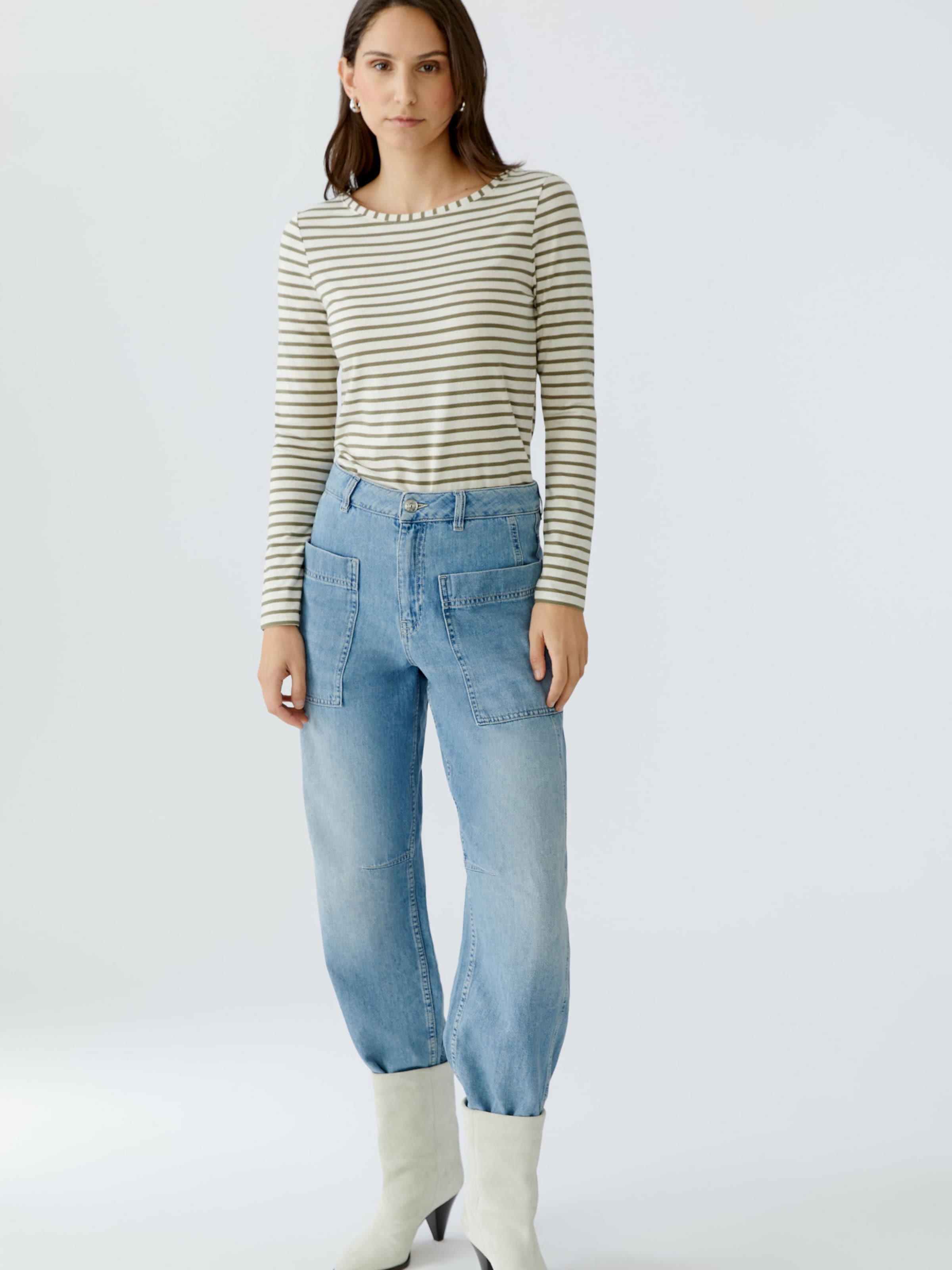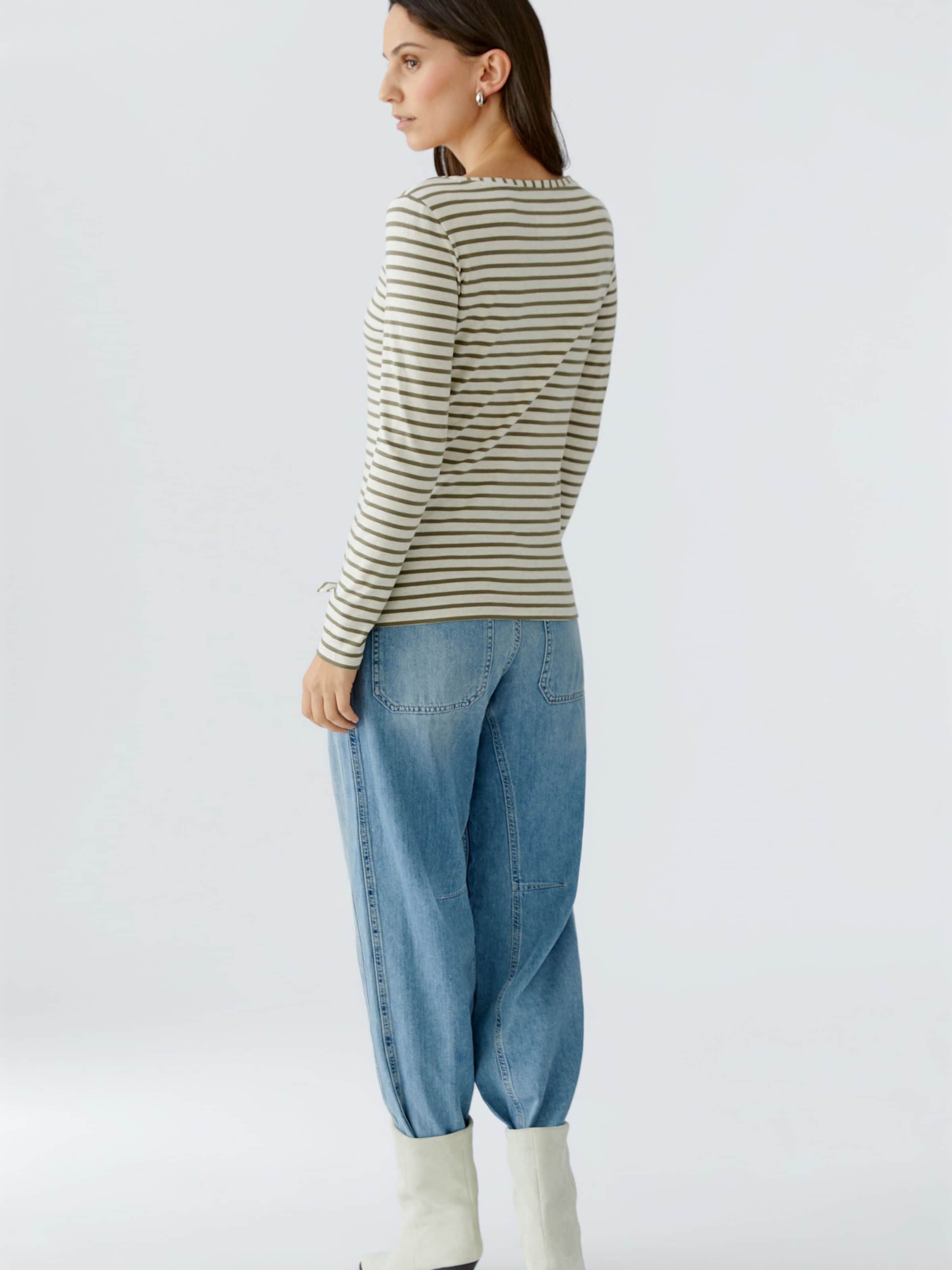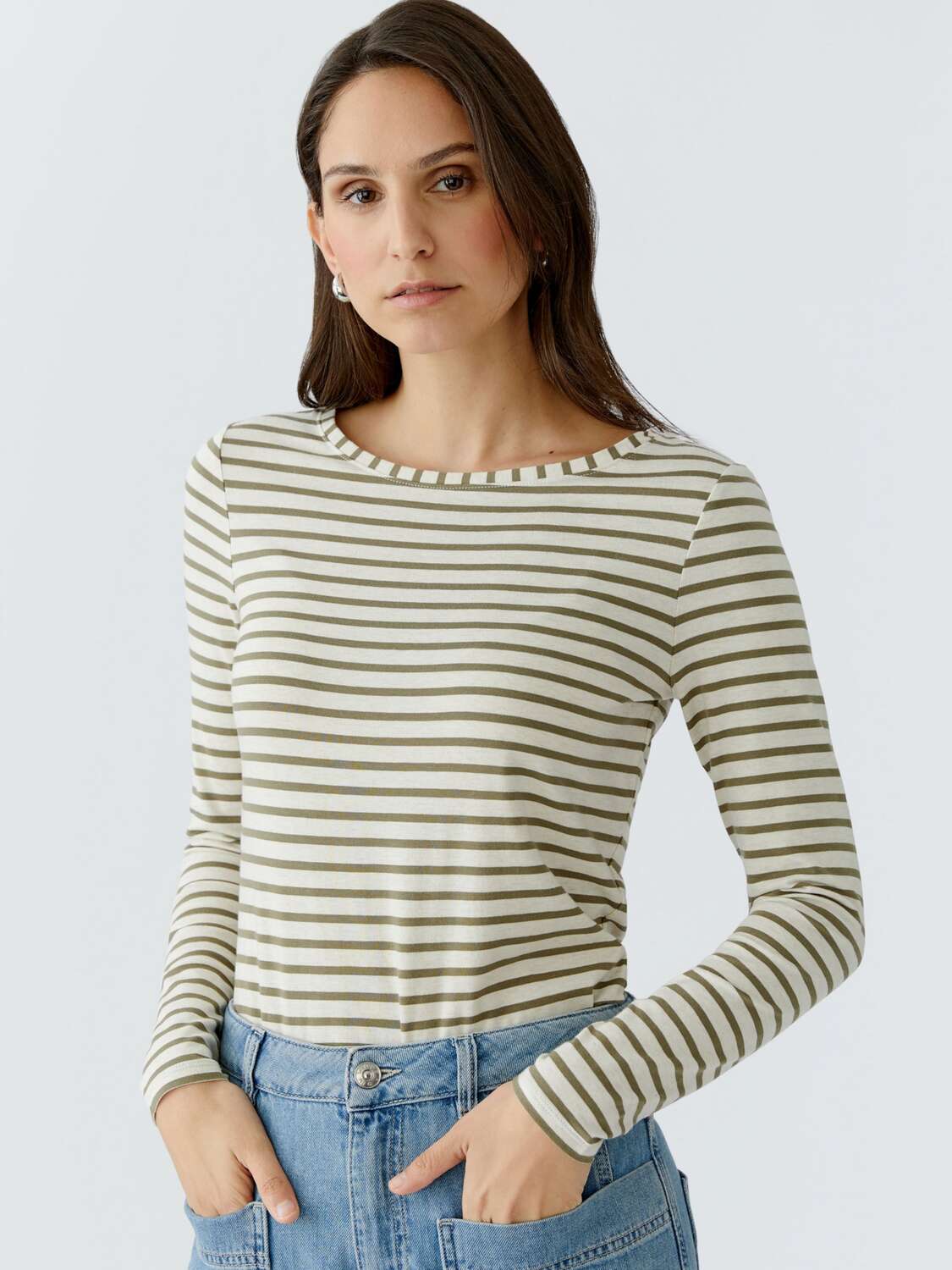 OUI Лонгслив 'SUMIKO' цвета хаки, крапчатый белый