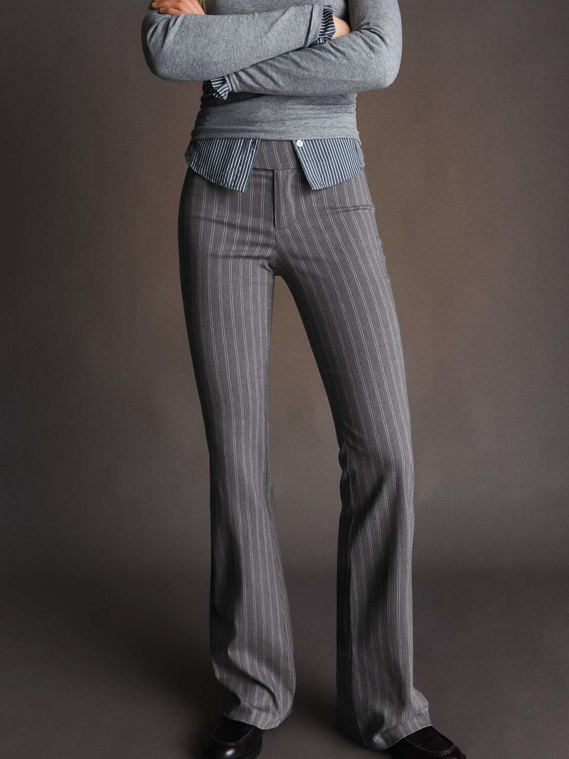 Bershka Брюки-клеш в темно-сером цвете