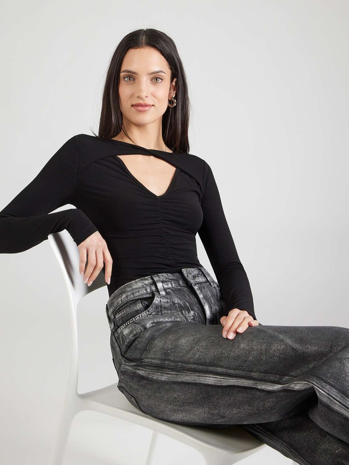 ABOUT YOU Боди-рубашка 'Lilia' в черном цвете